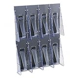 Plastic pockets are virtually unbreakable and feature the exclusive spring-action design of the Stand Tall break-resistant tongue that secures literature upright. One-piece unit. Mounted on black panel. 2 5/8" capacity per pocket. Predrilled for wall mounting (hardware included). Global Product Type: Literature Racks & Displays-Wall Mount; Literature Rack & Displays Type: Wall Mount; Number of Compartments: 8; Material(s): Unbreakable Plastic.